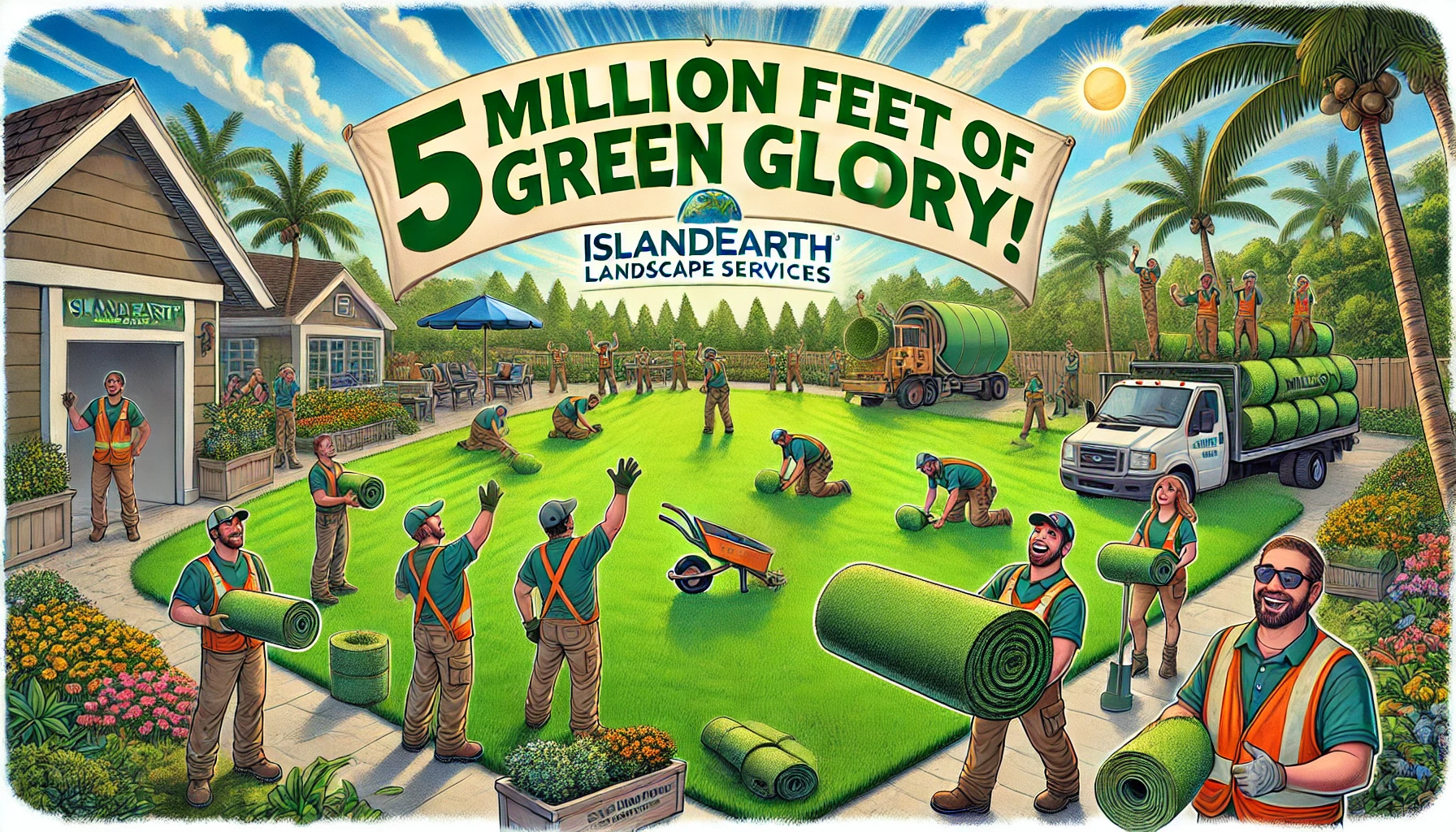 All right, lawn lovers, grab sunscreen and a lawn chair because we’ve got some epic news to make your grass grow greener with envy. This Wednesday, July 24th, IslandEarth Landscape Services is rolling out their five millionth square foot of sod. Yep, you heard that right – 5 million square feet! That’s like covering 88 football fields or laying a path to the moon (well, almost).